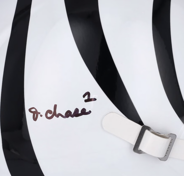 This full size replica speed helmet has been personally hand-signed by ja'marr chase. it is officially licensed by the national football league and comes with an individually numbered, tamper-evident hologram from fanatics authentic. to ensure authenticity, the hologram can be reviewed online. this process helps to ensure that the product purchased is authentic and eliminates any possibility of duplication or fraud.