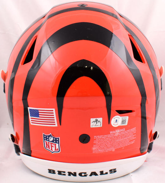 Ja'Marr Chase Autographed Cincinnati Bengals Full Size Speed Flex- Beckett W Hologram *Black This is a hand autograph of Ja'Marr Chase of the Cincinnati Bengals on a Riddell Football Full Size Speed Flex Authentic Helmet. This item has a Beckett Witness Authentication, which comes with a numbered sticker hologram and a QR code for verification. You can view this item on the Beckett Authentication website and it shows when and where the item was signed. It was signed either at a public autograph appearance or a private signing. This is a stock photo of the item. Although you may not receive this exact item, the item you receive is virtually identical and brand new in great shape.