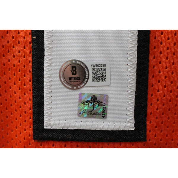 The number in the listing title is just an inventory sku for our records and is not the authentication number. The item pictured is a stock photo unless otherwise noted. This is a Pro Style Orange size XL Jersey with sewn on numbers that was personally autographed by Ja'Marr Chase. Includes a certificate of authenticity from Beckett Grading Services (BAS) and Denver Autographs.FREE SHIPPING within the USA on orders over $10!