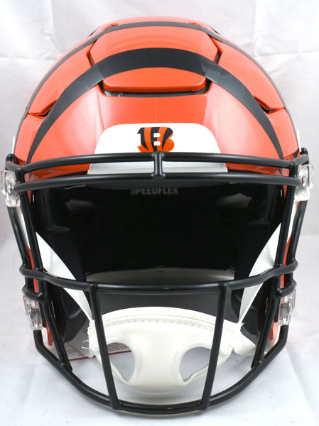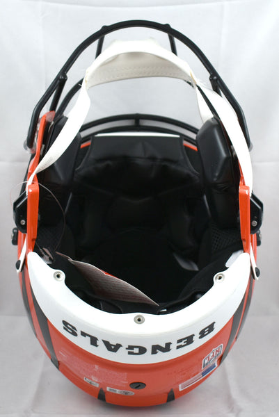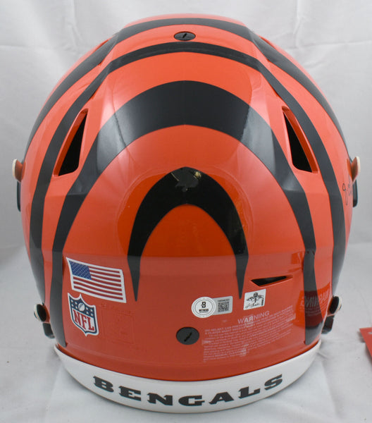 This is a hand autograph of Ja' Marr Chase of the Cincinnati Bengals on a Riddell Football Full Size Speed Flex Authentic Helmet. This item has a Beckett Witness Authentication, which comes with a numbered sticker hologram and a QR code for verification. You can view this item on the Beckett Authentication website and it shows when and where the item was signed. It was signed either at a public autograph appearance or a private signing. This is a stock photo of the item. Although you may not receive this exact item, the item you receive is virtually identical and brand new in great shape. This is a hand autograph of Ja' Marr Chase of the Cincinnati Bengals on a Riddell Football Full Size Speed Flex Authentic Helmet. This item has a Beckett Witness Authentication, which comes with a numbered sticker hologram and a QR code for verification. You can view this item on the Beckett Authentication website and it shows when and where the item was signed. It was signed either at a public autograph appearance or a private signing. This is a stock photo of the item. Although you may not receive this exact item, the item you receive is virtually identical and brand new in great shape.
