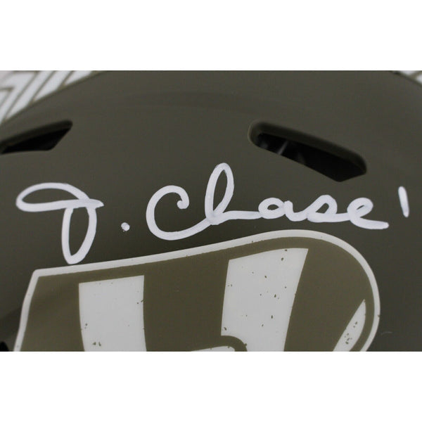The number in the listing title is just an inventory sku for our records and is not the authentication number. This is a stock photo, unless otherwise noted. This is a Cincinnati Bengals Authentic 2022 Salute to Service Helmet that was personally autographed by JaMarr Chase. Includes a certificate of authenticity from Beckett Authentication Services (BAS) and Denver Autographs.
