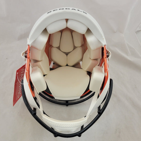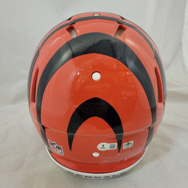 JAMARR CHASE AUTOGRAPHED CINCINNATI BENGALS FULL SIZE SPEED AUTHENTIC HELMET WITH BECKETT QR CODE HOLOGRAM COATHIS MEANS THE HELMET WAS SIGNED WITH A BECKETT REPRESENTATIVE PRESENT SO YOU CAN BE 100% CERTAIN ITS THE REAL THING.