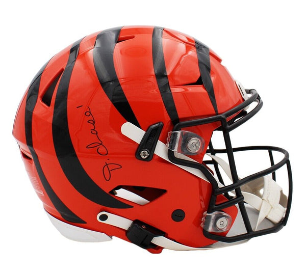 A Cincinnati Bengals Speed Flex Authentic NFL Helmet hand signed by Ja'Marr Chase. The item and signature are in excellent condition. Ja'Marr is a Football wide receiver. He was selected in the 1st round of the 2021 NFL Draft by the Cincinnati Bengals. He played college football at LSU. AUTHENTICATION: The item is accompanied by a Beckett Serial Numbered and Databased Hologram.