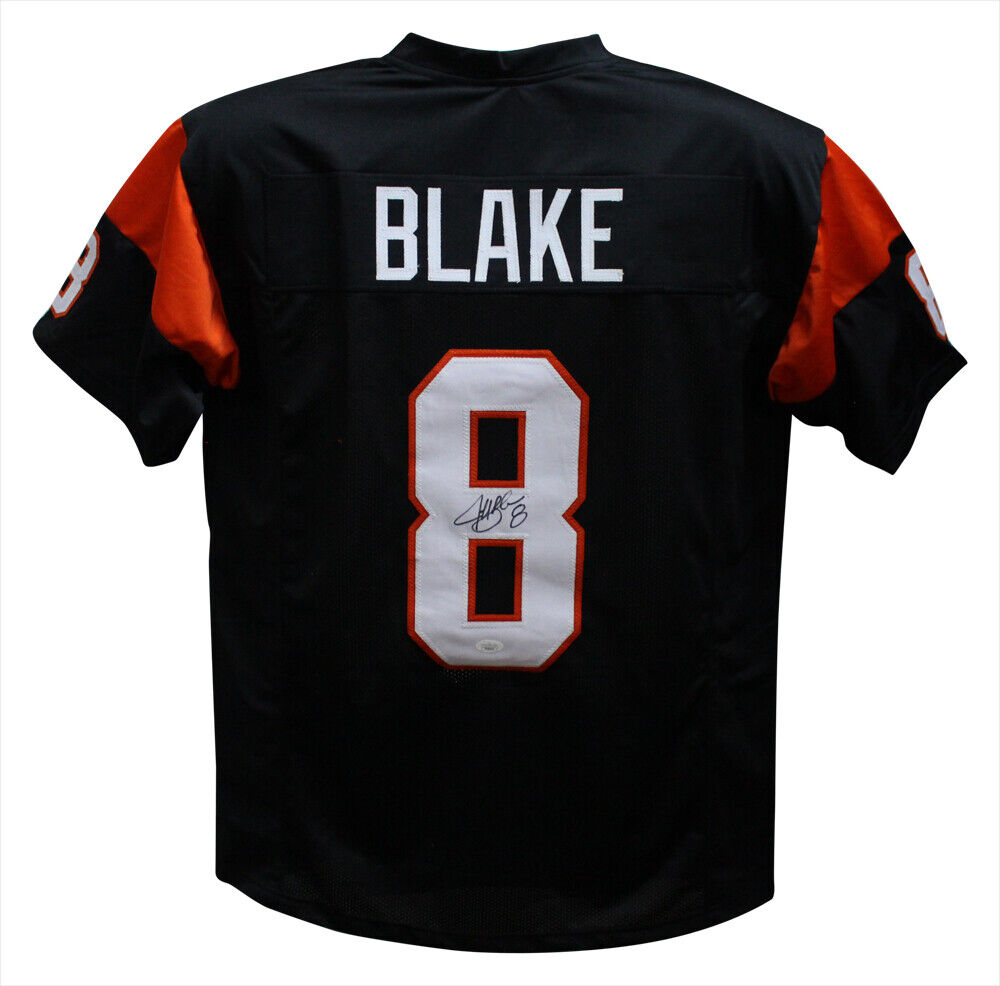 Jeff Blake Autographed/Signed Pro Style Black XL Jersey Beckett 35988 The number in the listing title is just an inventory sku for our records and is not the authentication number. The item pictured is a stock photo unless otherwise noted. This is a custom pro style black XL jersey with sewn on name and numbers that was personally autographed by Jeff Blake. Includes a certificate of authenticity from Beckett Authentication Services (BAS) and Denver Autographs.