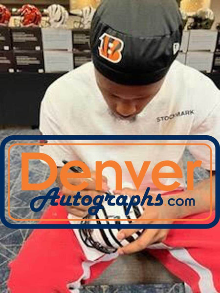 Tee Higgins Signed Cincinnati Bengals 2022 Alternate White Mini Helmet BAS 39059 The number in the listing title is just an inventory sku for our records and is not the authentication number. The item pictured is a stock photo unless otherwise noted. This is a Cincinnati Bengals 2022 alternate white mini helmet that was personally autographed by Tee Higgins. Includes a certificate of authenticity from Beckett Authentication Services (BAS) and Denver Autographs.
