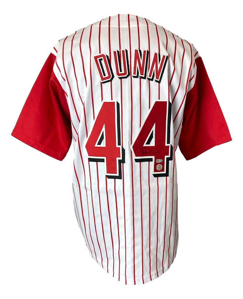 Featured is a Adam Dunn signed custom baseball jersey. This jersey has been hand signed by Dunn and comes with the Sports Integrity hologram and certificate of authenticity. This jersey has professionally sewn letters and numbers and is size XL. This jersey has no team tags or emblems and is intended as a sports collectible. This jersey would make a great addition to any sports collection!. SPECIFICATIONS Autographed By: Adam Dunn Team: Cincinnati Reds Sport: Baseball Authentication: PSA/DNA Authentication Services