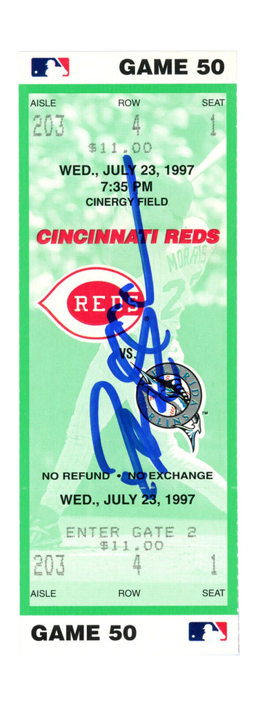 Deion Sanders Signed Cincinnati Reds 7/23/1997 vs Marlins Ticket BAS 37221 The number in the listing title is just an inventory sku for our records and is not the authentication number. The item pictured is a stock photo unless otherwise noted. This is a authentic ticket stub that was personally autographed by Deion Sanders. Includes a certificate of authenticity from Beckett Authentication Services (BAS) and Denver Autographs.