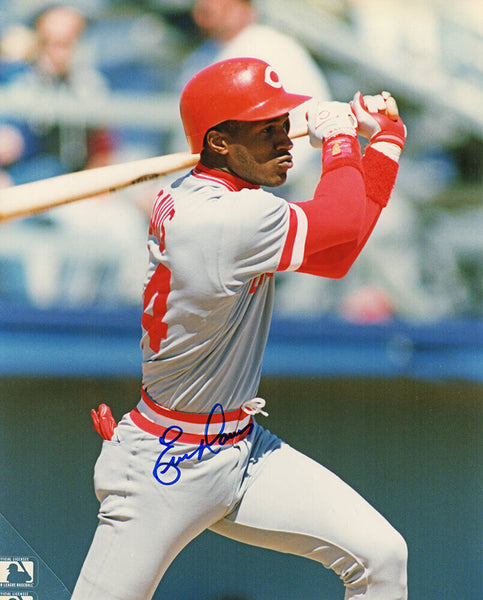 Eric Davis signed Cincinnati Reds swinging grey jersey 8x10 photo. Item comes with a Schwartz Sports Memorabilia tamper-proof numbered hologram and Certificate of Authenticity which can be verified online.