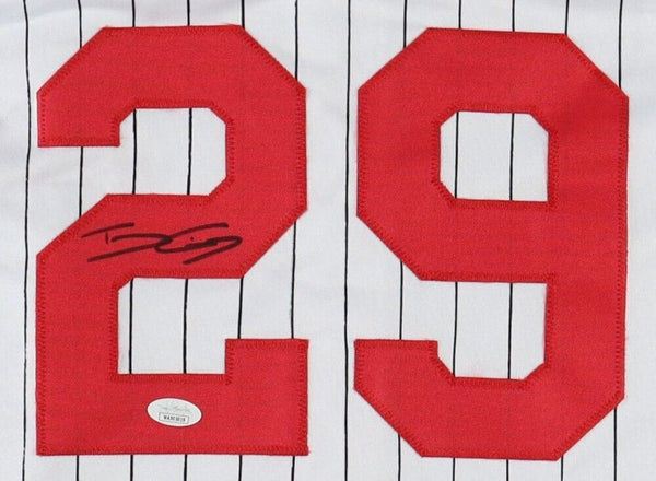 Custom on-field style jersey. Everything sewn on, size XL. Hand-signed by TJ Friedl.The autograph includes an official James Spence Authentication (JSA) hologram and QR code card for authenticity purposes. The signing of this item was witnessed by JSA.Authentication: JSA Hologram with QR Code cardCustom on-field style jerseys are a more affordable option for autograph seekers. These jerseys do not have any brand name or tags and are made in the Philippines. They feature stitched on names and numbers and are made to look very similar to the on-field jerseys that the players wear. These custom jerseys are very commonly used in the memorabilia industry.