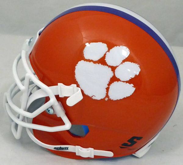 This is a Schutt Clemson Tigers Orange Mini Helmet that has been hand signed by Brian Dawkins.A This item has been certified authentic by Beckett Authentication (BAS) and comes with their sticker and matching certificate of authenticity.