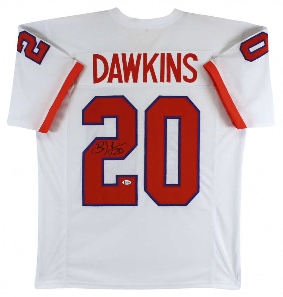 Custom on-field style jersey. Everything sewn on, size XL. Hand-signed by Brian Dawkins (Philadelphia Eagles, Denver Broncos, HOF).The lot / autograph(s) includes an official Beckett Authentication Services serially-numbered hologram and matching COA for authenticity purposes. The signing of this item was witnessed by Beckett.Authentication: Beckett COA