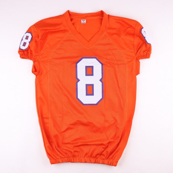Custom on-field style jersey. Everything is sewn on, size XL. Has been hand-signed by Justyn Ross.The lot / autograph(s) includes an official Beckett Authentication Services serially-numbered hologram and matching COA for authenticity purposes. Authentication: Beckett COA