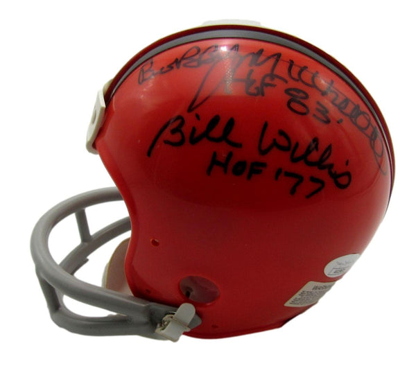 Cleveland Browns Hall of Fame Mini Helmet - Signed by Lavelli, Willis & Mitchell (JSA) This classic two-bar mini helmet features autographs from three legendary Browns Hall of Famers: Dante Lavelli, Bill Willis, and Bobby Mitchell. Authenticated by JSA, each signature adds historic value to this rare collectible. A must-have piece for serious NFL memorabilia collectors and Browns fans alike.