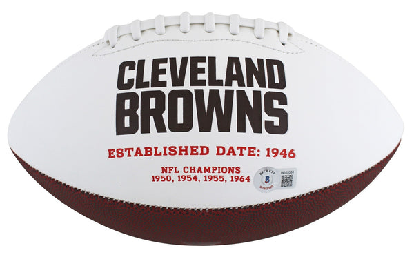 This Autographed Rawlings White Panel Logo Football with the inscription of "HOF 99" has been Personally Signed by Ozzie Newsome of the Cleveland Browns. This item is 100% Authentic to include a hologram by Beckett Authentication Services. This item may come with the new Beckett Authentication hologram that has a scannable QR code rather than the traditional COA. If you would like to have a COA, you are welcome to reach out to Beckett for a printed certification once you receive your item. This is a BAS Witnessed Protection Program item which means a Beckett Authentication Service representative was present when this item was being signed. We conducted an autograph signing with Ozzie Newsome where multiples of the same item were signed. While the photographs are representative of this item, the size, placement and strength of the signature may vary. Each item is hand signed, therefore, each autograph is unique. This item can be verified through BAS Witnessed.
