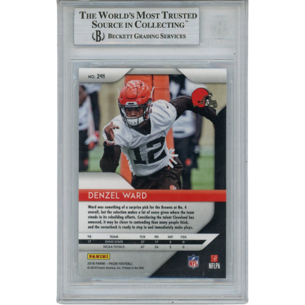 The number in the listing title is just an inventory sku for our records and is not the authentication number. The item pictured is a stock photo. There are multiple quanities of this item. Each of these items is unique because they are individually hand-signed. While the photographs accurately represent the item itself, please note that the signature's size, exact placement, and strength may differ on the one you receive. This is a Cleveland Browns 2018 Prizm Slabbed Trading Card that was personally autographed by Denzel Ward. Includes a certificate of authenticity / hologram from Beckett Authentication Services (BAS) and Denver Autographs. FREE SHIPPING within the USA on orders over $10!