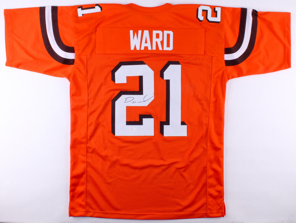 Custom on-field style jersey. Everything is sewn on, size XL. Hand-signed in black felt-tip pen by Denzel Ward. The lot / autograph(s) includes an official James Spence Authentication (JSA) hologram and matching COA for authenticity purposes. The signing of this item was witnessed by JSA.Authentication: JSA COA