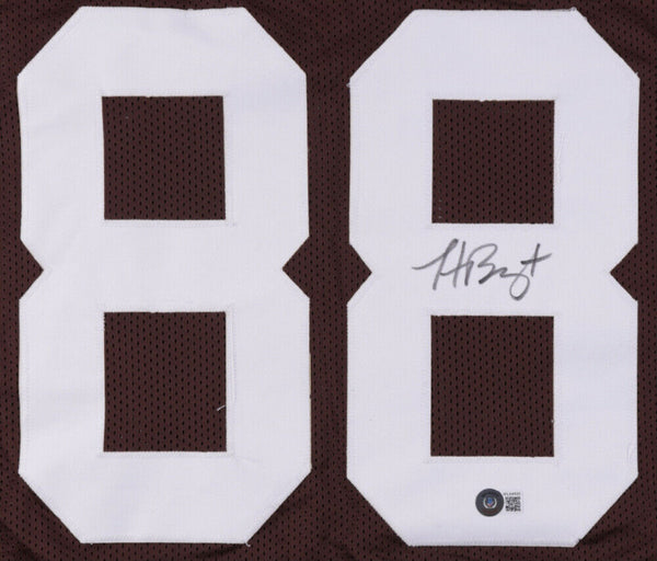 Custom on-field style jersey. Everything is sewn on, size XL. Has been hand-signed by Harrison Bryant.The lot / autograph(s) includes an official Beckett Authentication Services serially-numbered hologram for authenticity purposes. The signing of this item was witnessed by Beckett.Authentication: Beckett Hologram