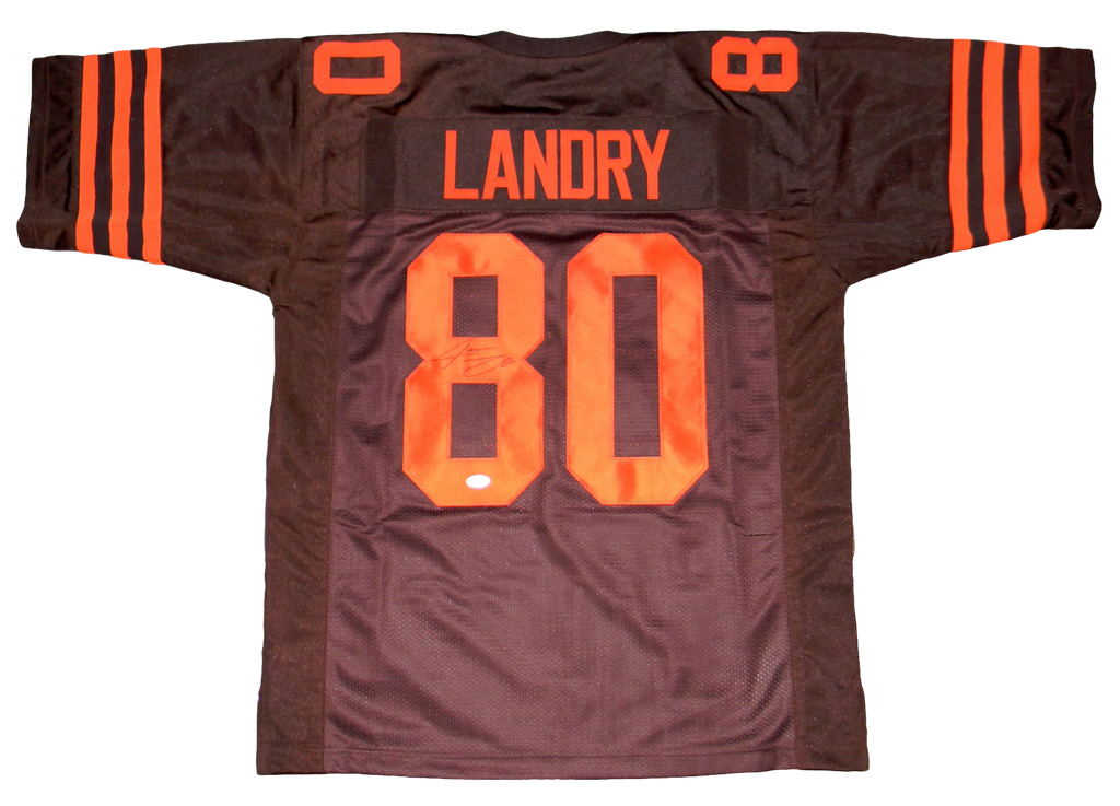 Jarvis Landry, star wide receiver for the Cleveland Browns, has hand signed this brown custom jersey at a private signing. Jersey is size XL and all letters/numbers are sewn-on. This item comes with a certificate of authenticity (COA) from JSA - James Spence Authentication and was signed in the presence of one of their representatives. You will receive a serial-numbered COA along with a matching serial-numbered sticker on the jersey. The authenticity can be verified online by entering the serial number.Item pictured may not be the exact item you will receive. It will be similar quality, and we guarantee your satisfaction.
