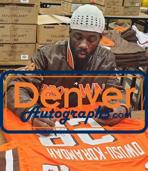 Jeremiah Owusu-Koramoah Autographed Pro Style Orange XL Jersey BAS 34744 The number in the listing title is just an inventory sku for our records and is not the authentication number. The item pictured is a stock photo unless otherwise noted. This is a custom pro style orange XL jersey with sewn on name and numbers that was personally autographed by Jeremiah Owusu-Koramoah. Includes a certificate of authenticity from Beckett Authentication Services (BAS) and Denver Autographs.