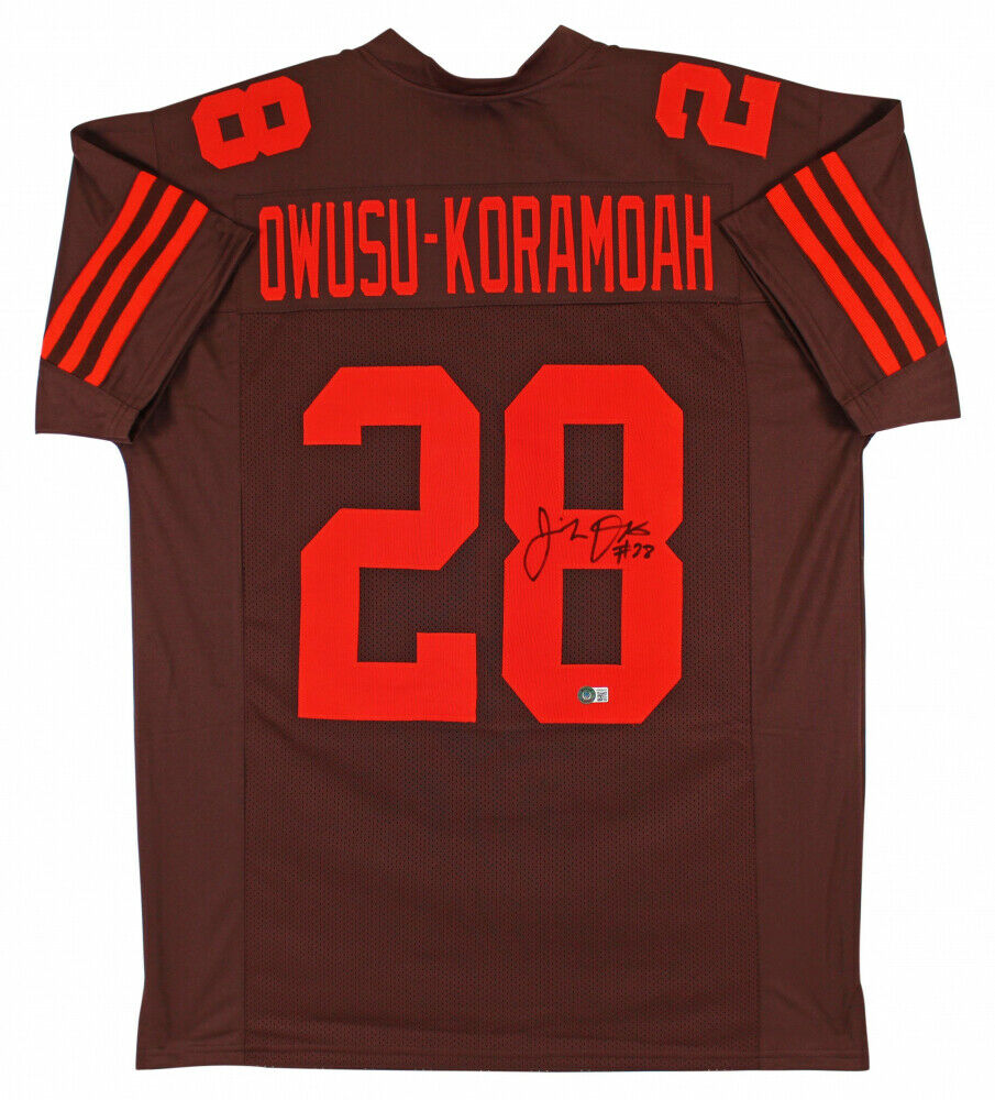Custom on-field style jersey. Everything sewn on, size XL. Hand-signed by Jeremiah Owusu-Koramoah.The lot / autograph(s) includes an official Beckett Authentication Services serially-numbered hologram and matching COA for authenticity purposes. The signing of this item was witnessed by Beckett.Authentication: Beckett COA