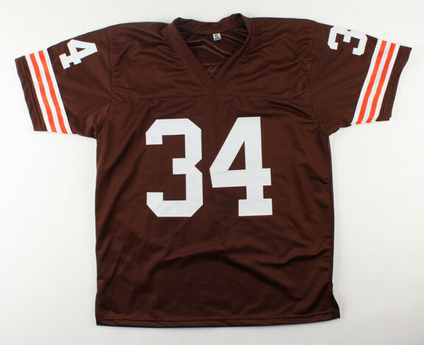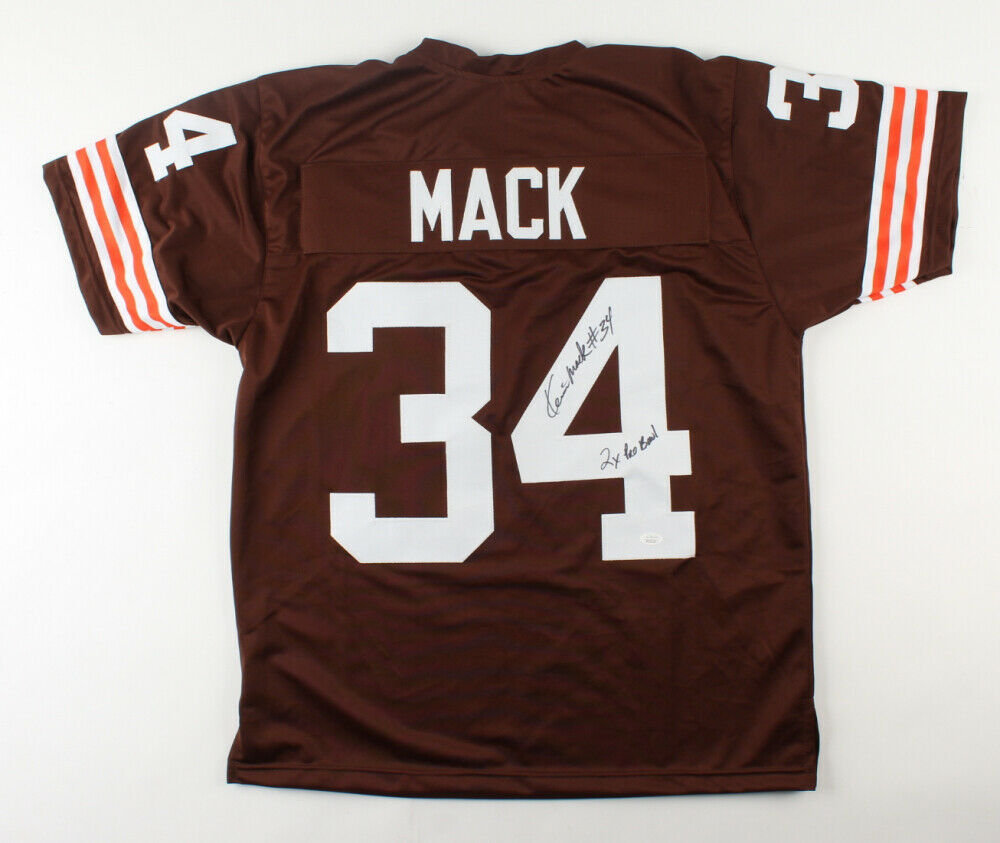 Custom on-field style jersey. Everything sewn on, size XL. Hand-signed in black felt-tip pen by Kevin Mack. The autograph includes an official James Spence Authentication hologram and matching COA for authenticity purposes. The signing was witnessed by JSA.Authentication: JSA COA