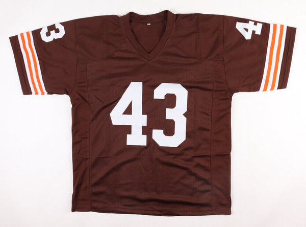 Custom on-field style jersey. Everything sewn on, size XL. Hand-signed in black felt-tip pen by Mike Pruitt. The autograph includes an official James Spence Authentication hologram and matching COA for authenticity purposes.Authentication: JSA COA