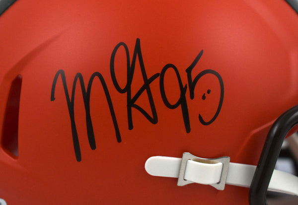 This is a Myles Garrett of the Cleveland Browns hand autographed Riddell Football Speed Mini Helmet. It has a Beckett Witnessed Authentication, which comes with a numbered hologram and a QR code for verification. You can view this item on the Beckett Authentication website and it shows when and where the item was signed. It was signed either at a public autograph appearance or a private signing. This is a stock photo of the item. Although you may not receive this exact item, the item you receive is virtually identical, brand new, and in great shape. This is a Myles Garrett of the Cleveland Browns hand autographed Riddell Football Speed Mini Helmet. It has a Beckett Witnessed Authentication, which comes with a numbered hologram and a QR code for verification. You can view this item on the Beckett Authentication website and it shows when and where the item was signed. It was signed either at a public autograph appearance or a private signing. This is a stock photo of the item. Although you may not receive this exact item, the item you receive is virtually identical, brand new, and in great shape.