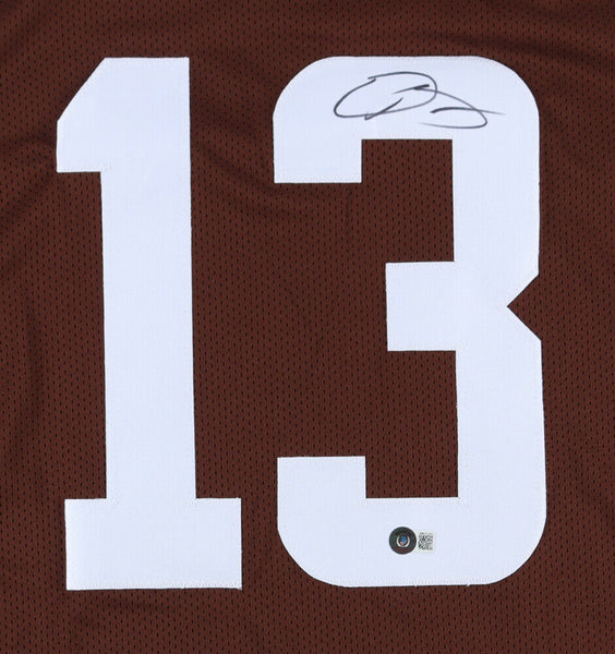 Custom on-field style jersey. Everything is sewn on, size XL. Hand-signed by Odell Beckham Jr.The lot / autograph(s) includes an official Beckett Authentication Services serially-numbered hologram with QR Code Card for authenticity purposes. The signing of this item was witnessed by Beckett.Authentication: Beckett Hologram with QR Code Card