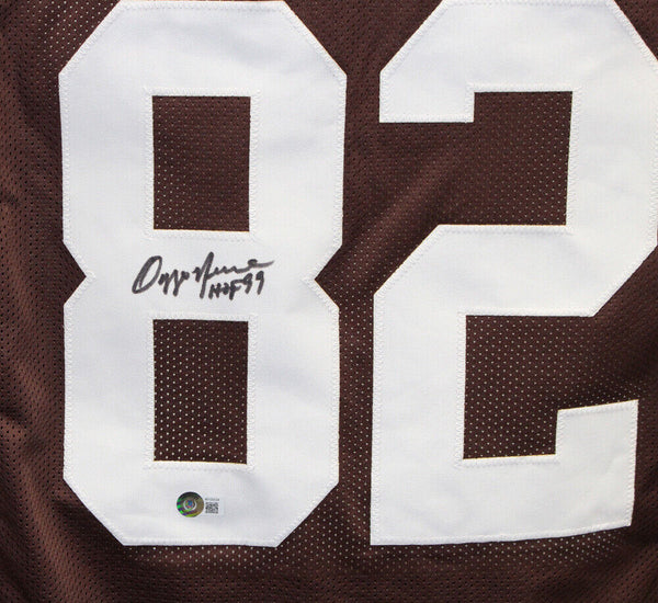 Ozzie Newsome Autographed/Signed Pro Style Brown HOF Jersey Beckett 41023 The number in the listing title is just an inventory sku for our records and is not the authentication number. The item pictured is a stock photo unless otherwise noted. This is a Pro Style Brown size XL Jersey that was personally autographed by Ozzie Newsome with "HOF" Inscription. Includes a certificate of authenticity from Beckett Authentication Services (BAS) and Denver Autographs.