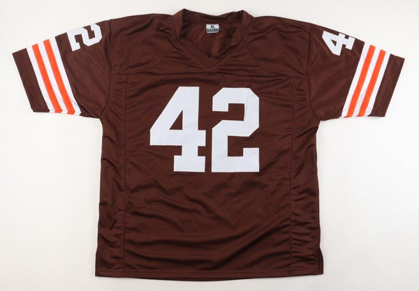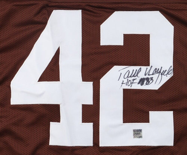 Custom on-field style jersey. Everything sewn on, size Adult XL. Hand-signed and inscribed by Paul Warfield (Cleveland Browns, Miami Dolphins, HOF). Please note, the inscription has bled.The autograph includes an official Playball Ink hologram for authenticity purposes. The signing of this item was witnessed by Playball Ink.Authentication: Playball Ink Hologram