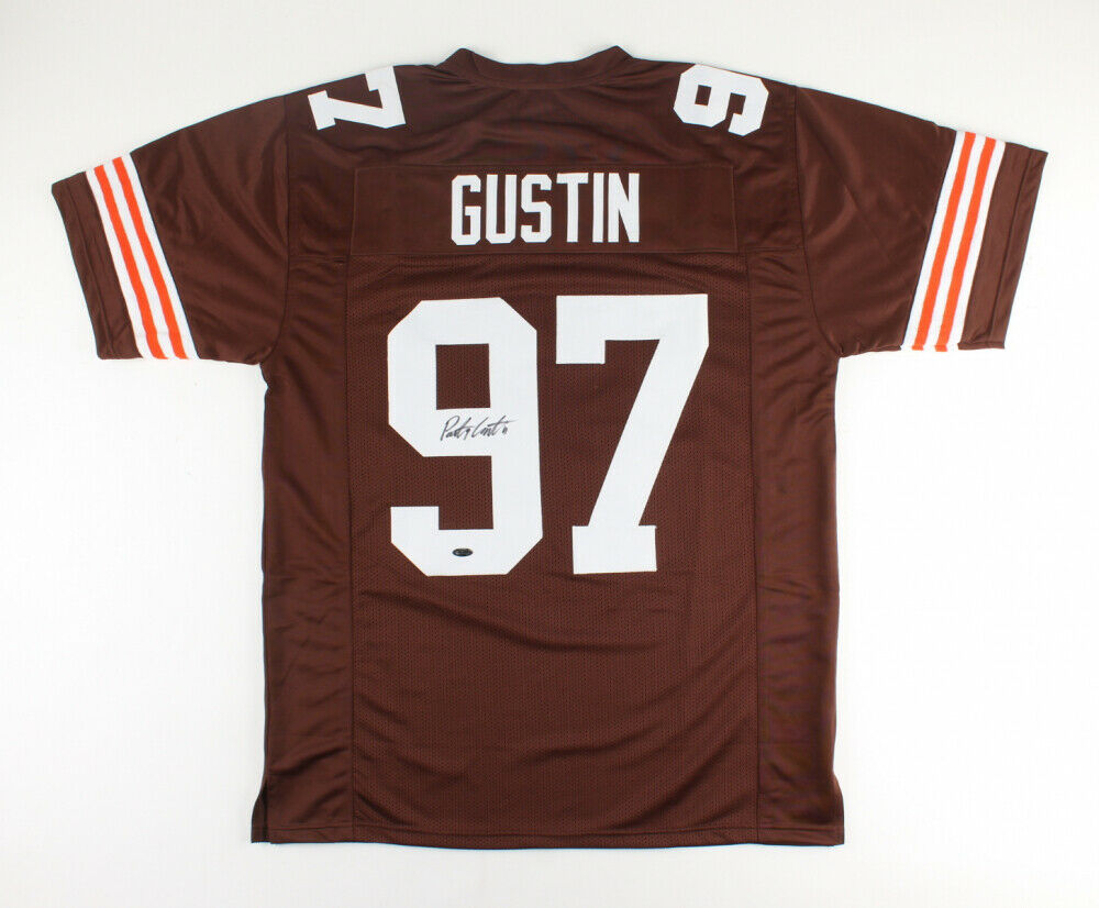 Custom on-field style jersey. Everything is sewn on, size XL. Hand-signed by Porter Gustin. Please note, the jersey shows signs of staining.The lot / autograph(s) includes an official Playball Ink hologram for authenticity purposes. Authentication: Playball Ink Hologram