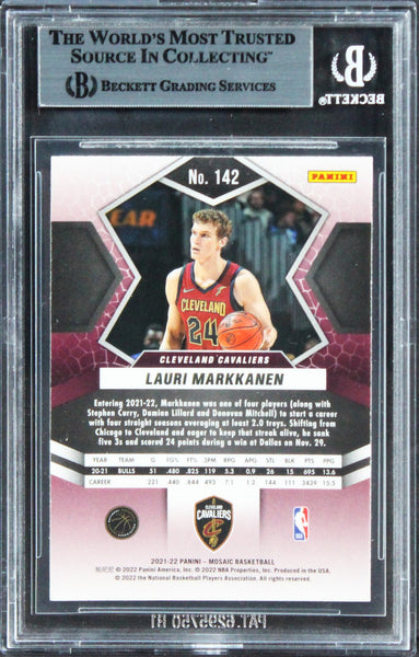 This Autographed 2021 Panini Mosaic #142 Card has been Personally Signed by Lauri Markkanen of the Cleveland Cavaliers. This item is 100% Authentic, it comes slabbed and authenticated by Beckett Authentication Services. The authenticity can be verified on Beckett Authentication Services website.