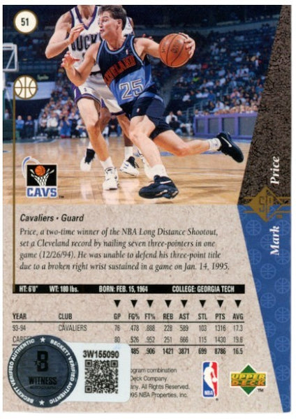 Mark Price Autographed/Signed 1994-1995 SP #51 Trading Card Beckett 52552