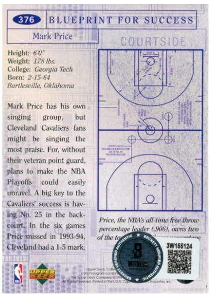 Mark Price Autographed/Signed 94-95 Upper Deck #376 Trading Card Beckett 52564