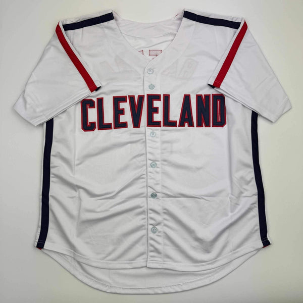 Autographed/Signed Carlos Baerga Cleveland White Baseball Jersey Beckett BAS COA Jersey has no brand names or logos. This is a custom jersey and was not manufactured by or in any manner associated with any professional sports league or manufacturer. This custom jersey carries no professional sports league designation. The item is intended to be an autographed collectible. The custom jersey displays the name and number of the player. This item in no way is affiliated with or connected to any professional sports organization. Size is XL.