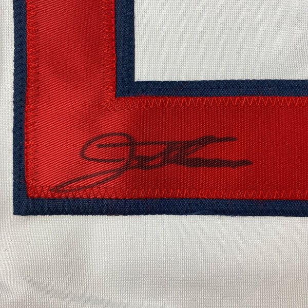 Autographed/Signed Jim Thome Cleveland White Baseball Jersey JSA COA Jersey has no brand names or logos. This is a custom jersey and was not manufactured by or in any manner associated with any professional sports league or manufacturer. This custom jersey carries no professional sports league designation. The item is intended to be an autographed collectible. The custom jersey displays the name and number of the player. This item in no way is affiliated with or connected to any professional sports organization. Size is XL.