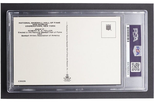 Hall of Fame Plaque postcard has been hand-signed by Bob Feller (D. 2010, Cleveland Indians, HOF).The item / autograph(s) has been authenticated and encapsulated by PSA/DNA for authenticity purposes.Authentication: PSA Encapsulated