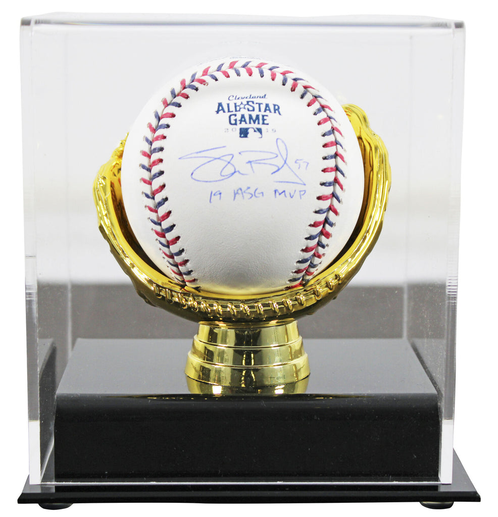 This Autographed OML Baseball 2019 All Star Game Logo Baseball Gold Glove Acrylic Display Case with the inscription of "19 ASG MVP" has been Personally Signed by Shane Bieber of the Cleveland Indians. This item is 100% Authentic to include a Certificate of Authenticity (COA) / hologram by Beckett Authentication Services. This is a BAS Witnessed Protection Program item which means a Beckett Authentication Service representative was present when this item was being signed. We conducted an autograph signing with Shane Bieber where multiples of the same item were signed. While the photographs are representative of this item, the size, placement and strength of the signature may vary. Each item is hand signed, therefore, each autograph is unique. This item can be verified through BAS Witnessed.
