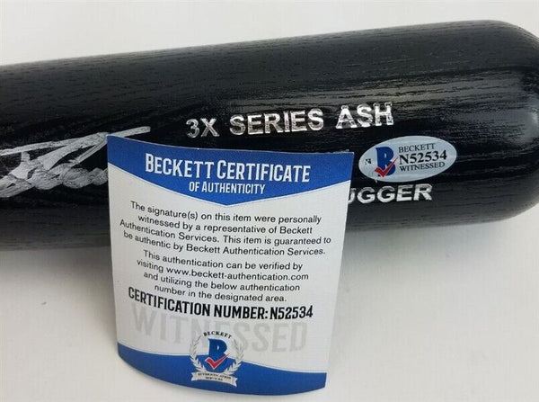 Rawlings Pro baseball bat. Hand-signed and inscribed in silver felt tip pen by Jim Thome (Indians, White Sox, Phillies, Dodgers, Twins, Orioles . The lot / autograph(s) includes an official Beckett Authentication Service (BAS) hologram and matching COA for authenticity purposes.Authentication: Beckett COA