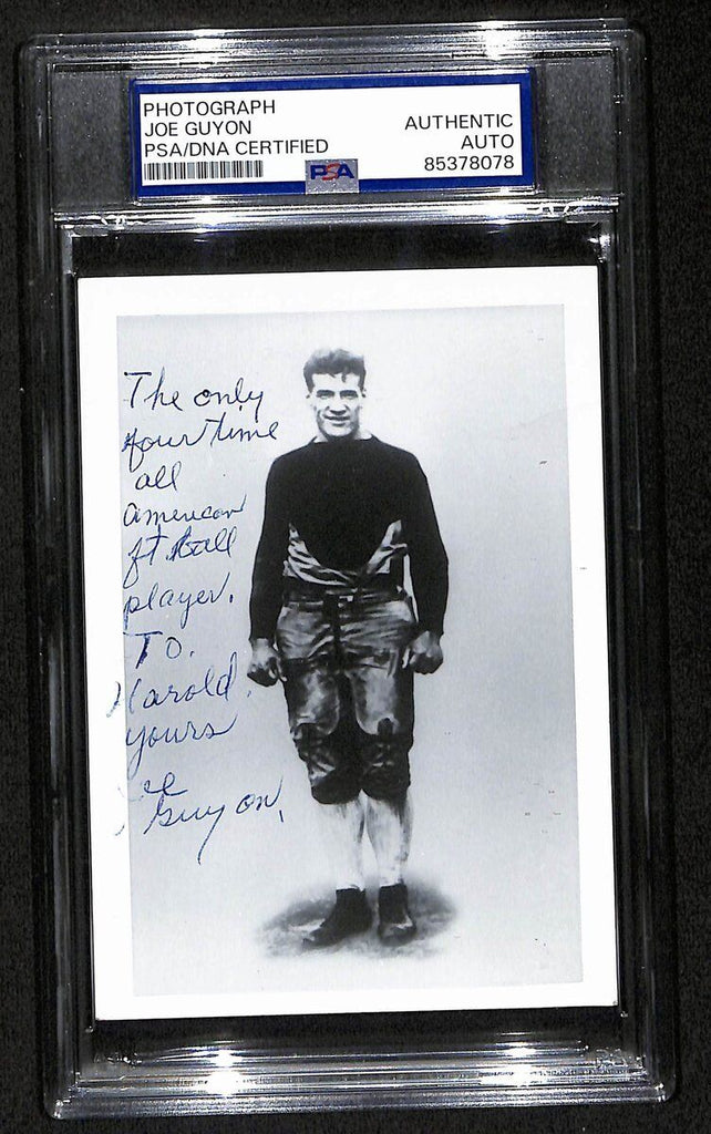 Joe Guyon HOF Signed/Inscribed 3.5x5 Photo Cleveland Indians PSA/DNA 193391. This photo is authenticated by PSA/DNA and is encapsulated in their tamper-proof acrylic case.