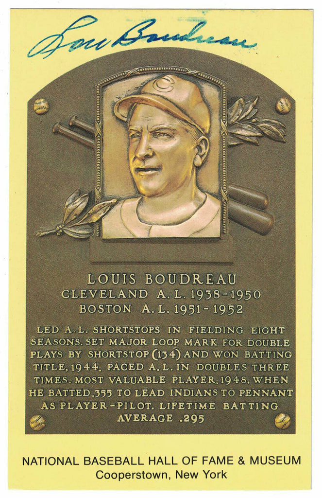 Lou Boudreau Signed Cleveland Indians Hall Of Fame Plaque Postcard BAS 27064 This is a Hall of Fame postcard commemorating the induction into the National Baseball Hall of Fame and Museum that was personally autographed by Lou Boudreau. This is the exact item that you will receive so please see scan for condition. Includes a certificate of authenticity from Beckett Authentication Services (BAS) and Denver Autographs.