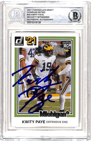 Kwity Paye Autographed Donruss Chronicles 2021 #19 Card Slabbed Beckett 38925