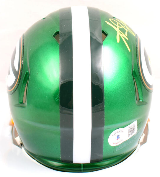 Aaron Jones Autographed Green Bay Packers Flash Speed Mini Helmet- Beckett W Hologram *Yellow This is a Hand Autographed Helmet of Aaron Jones of the Green Bay Packers. This is a Riddell Football Flash Speed Mini Helmet. This item has a Beckett Witness Authentication, which Comes with a Beckett #'ed Hologram and a QR code for verification. You can view this item on the Beckett website and it shows when and where the item was signed. It was signed either at a public autograph appearance or a Private Signing. This is a stock photo of the item. Although you may not receive this exact item, the item you receive is virtually identical and brand new in great shape.