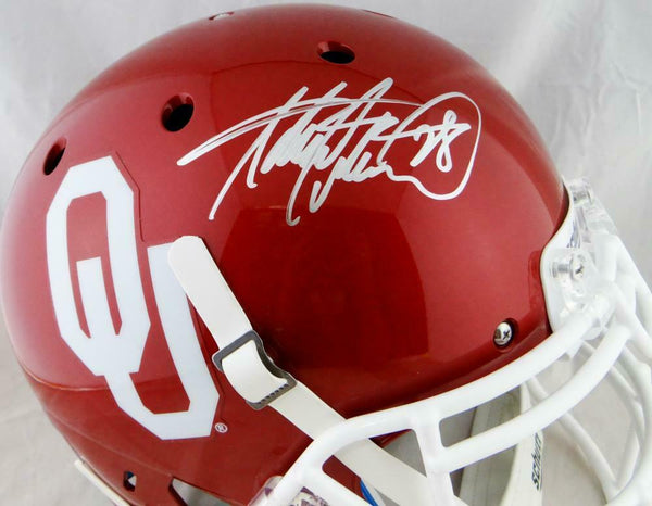 Adrian Peterson Autographed Oklahoma Sooners F/S Authentic Schutt Helmet- Beckett Auth *Silver This is a Hand Autograph of Adrian Peterson of the Oklahoma Sooners on a Schutt Football Full Size Authentic Helmet. This item has a Beckett Witness Authentication, which comes with a Beckett #'ed sticker and a matching Certificate of Authenticity. You can view this item on the Beckett Authentication website, it shows when and where the item was signed. It was signed either at a public autograph appearance or a private signing. This is a stock photo of the item. Although you may not receive this exact item, the item you receive is virtually identical and brand new in great shape.