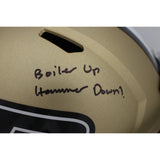 The number in the listing title is just an inventory sku for our records and is not the authentication number. The item pictured is a stock photo unless otherwise noted. This is a Purdue Boilermakers Replica Full Size Helmet that was personally autographed by Aidan O'Connell includes "Boiler Up, Hammer Down" inscription. Includes a certificate of authenticity from Beckett Authentication Services (BAS) and Denver Autographs.FREE SHIPPING within the USA on orders over $10!