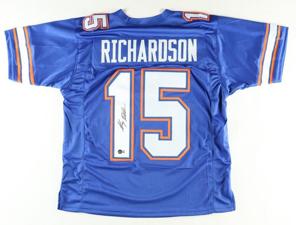 Custom on-field style jersey. Everything is sewn on, size XL. Hand-signed by Anthony Richardson.The autograph includes an official Beckett Authentication Services serially numbered hologram for authenticity purposes.Authentication: Beckett HologramCustom on-field style jerseys are a more affordable option for autograph seekers. These jerseys do not have any brand name or tags and are made in the Philippines. They feature stitched on names and numbers and are made to look very similar to the on-field jerseys that the players wear. These custom jerseys are very commonly used in the memorabilia industry.