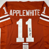 Autographed/Signed Major Applewhite Texas Orange College Football Jersey JSA COA Jersey has no brand names or logos. This is a custom jersey and was not manufactured by or in any manner associated with any professional sports league or manufacturer. This custom jersey carries no professional sports league designation. The item is intended to be an autographed collectible. The custom jersey displays the name and number of the player. This item in no way is affiliated with or connected to any professional sports organization. Size is XL.