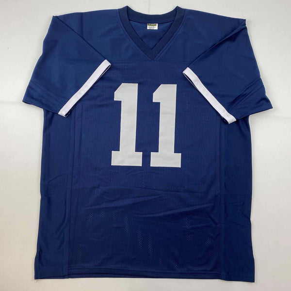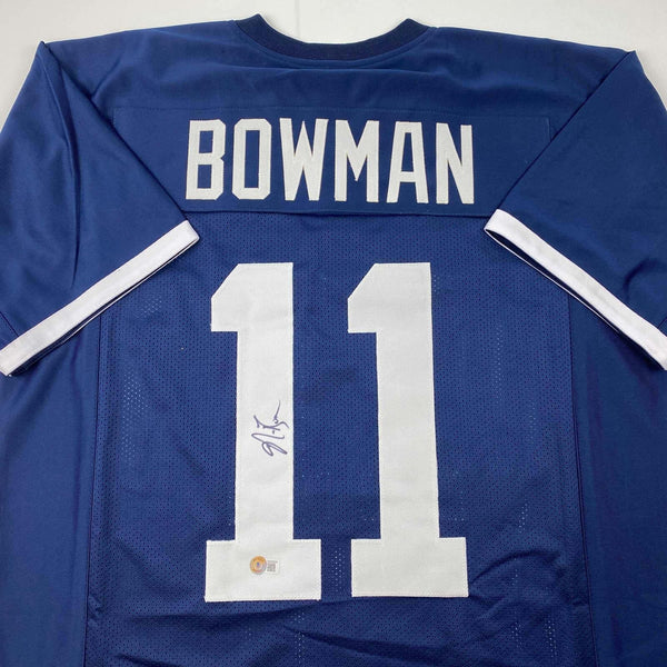 Autographed/Signed NaVorro Bowman Penn State Blue College Jersey Beckett BAS COA Jersey has no brand names or logos. This is a custom jersey and was not manufactured by or in any manner associated with any professional sports league or manufacturer. This custom jersey carries no professional sports league designation. The item is intended to be an autographed collectible. The custom jersey displays the name and number of the player. This item in no way is affiliated with or connected to any professional sports organization. Size is XL.