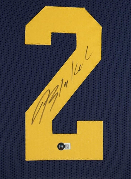 Custom frame measures 35" x 43" in size and features a jersey hand-signed by Blake Corum. The autograph includes an official James Spence Authentication (JSA) hologram for authenticity purposes. The signing of this item was witnessed by JSA.Authentication: JSA Hologram
