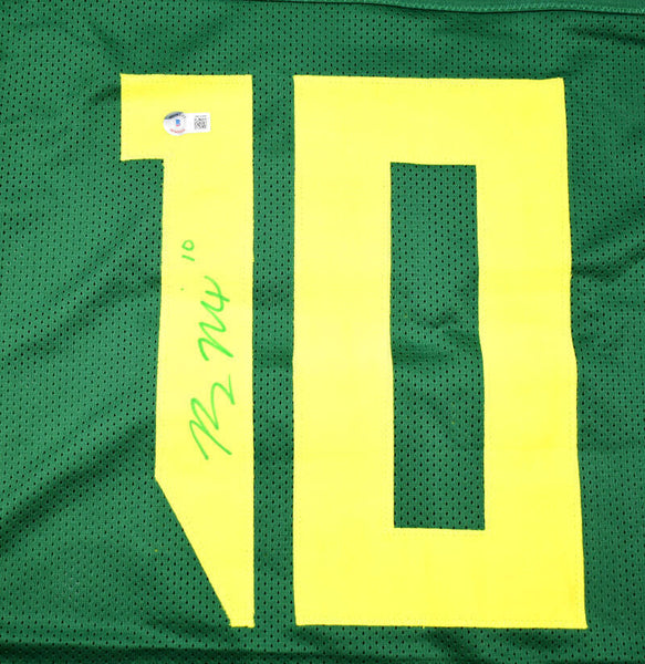 Bo Nix Autographed Green College Style Jersey - Beckett W Hologram *Green THIS IS NOT AN NCAA JERSEY. THIS HAS NO TAGS, NO LOGOS, NO EMBLEMS. This is a Hand Autographed Jersey of Bo Nix. This is Custom Made (Non Name Brand) Authentic Style (Stitched Letters and Numbers). This item has a Beckett Witnessed Authentication, which Comes with a Beckett #'ed hologram and a QR code for verification. You can view this item on the Beckett website and it shows when and where the item was signed. It was signed either at a public autograph appearance or a Private Signing. This is a stock photo of the item. Although you may not receive this exact item, the item you receive is virtually identical and brand new in great shape. Jersey size is XL.
